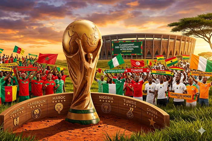 Voici le classement des pays africains selon le nombre de participations à la Coupe du Monde de 1930 à 2026 :