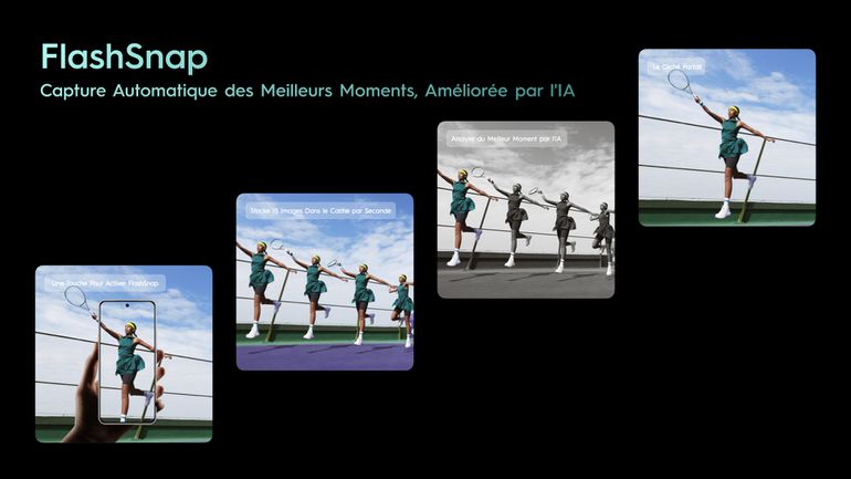 Mode FlashSnap activé, l'appareil photo stocke 15 images dans le cache par seconde et sélectionne intelligemment la meilleure photo grâce à des algorithmes d'IA avancés.
