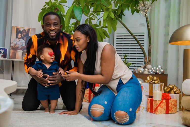 Le champion international Cheick Cissé a opté pour des tenues de tous les jours, pas de pyjamas. C'est d'ailleurs le 1er noël de leur bébé.