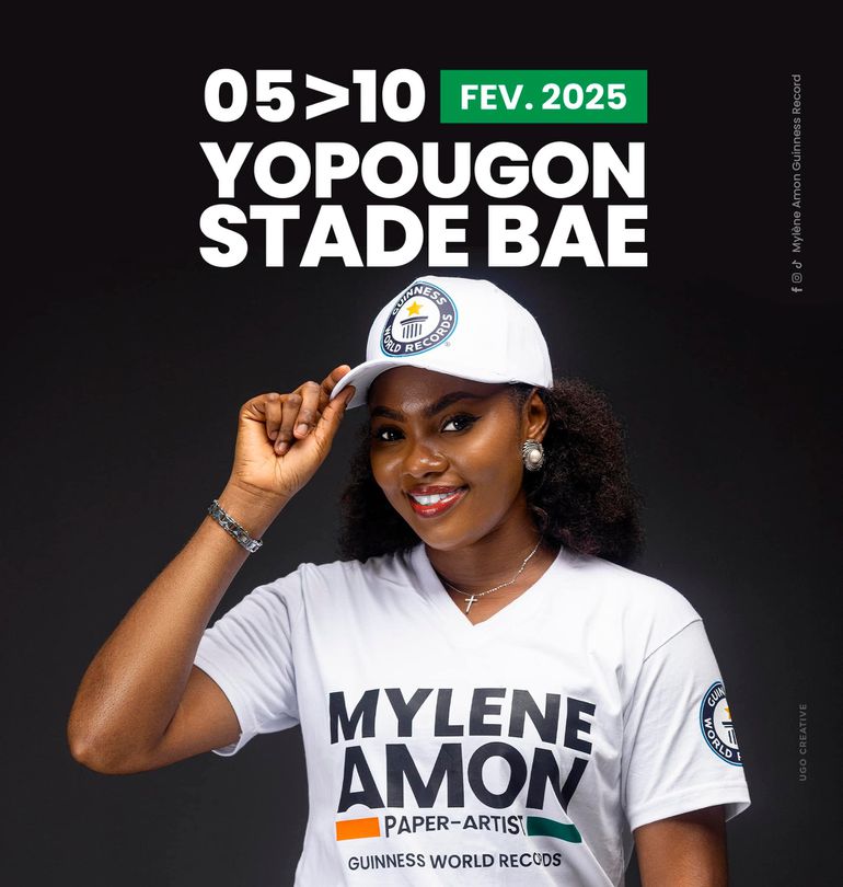 Du 5 au 10 février 2025, la Côte d’Ivoire vibrera au rythme d’un défi artistique hors du commun. Mylène Amon, talentueuse paper-artiste autodidacte, tentera d’inscrire son nom dans le célèbre Guinness World Records en réalisant 150 portraits en seulement 120 heures. Un exploit technique et humain qui marquera l’histoire de l’art en Côte d'Ivoire et en Afrique.