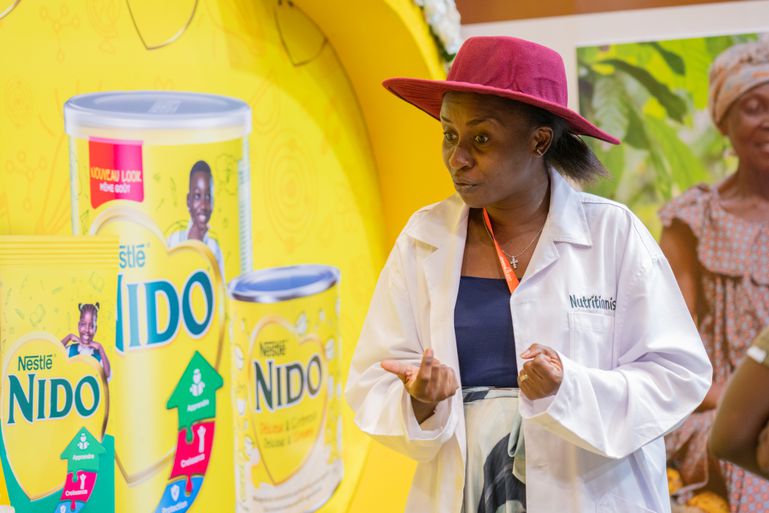NIDO est un produit de Nestlé dont l'objectif est mis sur la croissance et l'apprentissage des enfants. Avec sa formule enrichie, comprenant du fer et d'autres vitamines et minéraux essentiels, Nido se veut être un produit qui impacte la concentration et le développement intellectuel de l'écolier. Selon la nutritionniste du stand Nestlé Nadia Ouattara, NIDO est fait pour tout le monde.