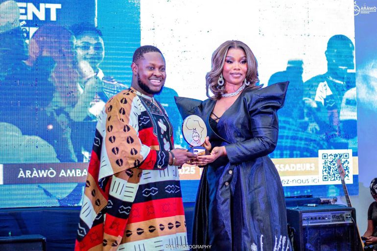 Les Arawò Ambassadeur Awards sont une cérémonie annuelle qui célèbre l’excellence et le rayonnement des artistes et personnalités africaines dans divers domaines. Cette édition, très attendue, a eu lieu au Bénin, précisément à Cotonou, et le gala des lauréats s’est déroulé le 8 novembre 2025. Roseline Layo, resplendissante, y a été honorée devant un public chaleureux et conquis. Elle a tenu à remercier le peuple béninois pour l’accueil exceptionnel, ainsi que ses fans, affectueusement appelés les « Élus », pour leur soutien indéfectible et leurs votes massifs.