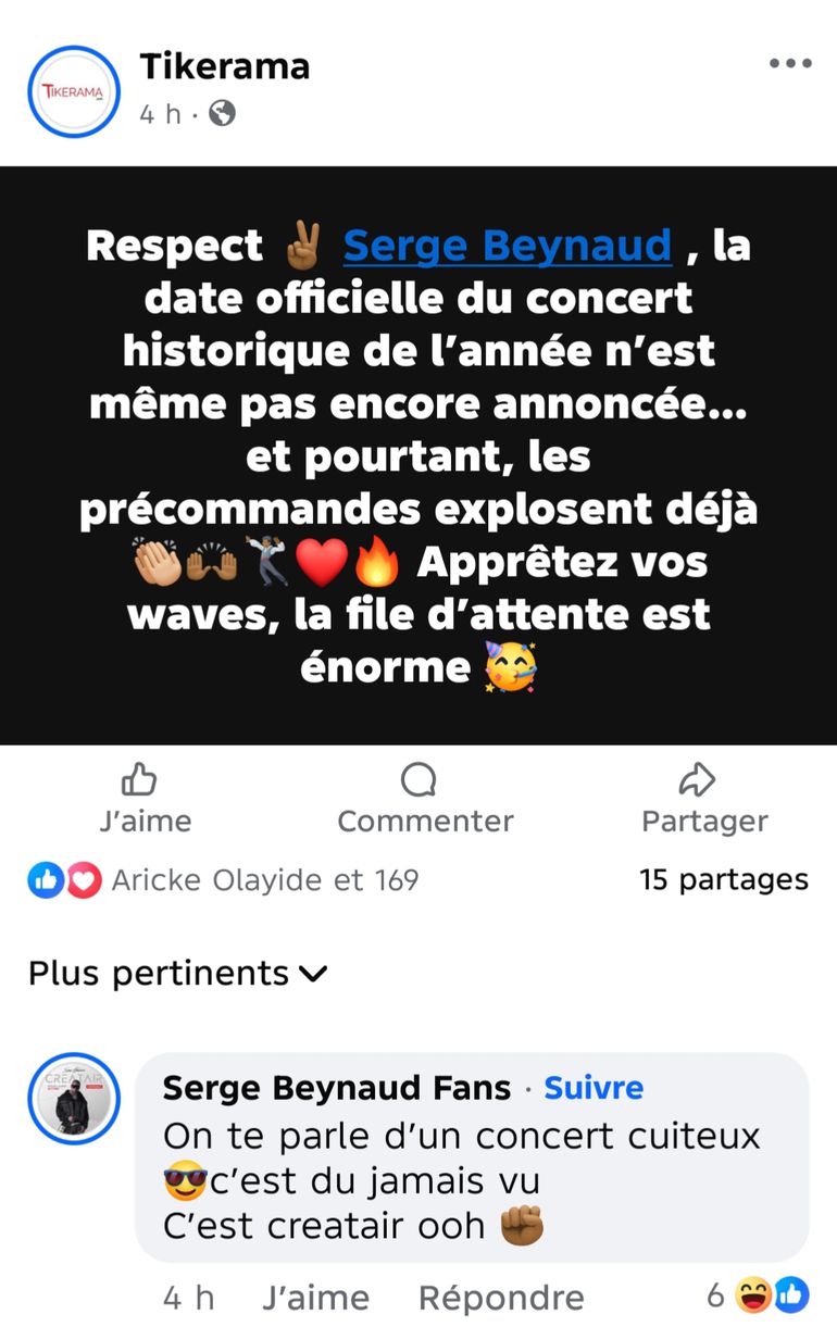 L'annonce a suffi à tout déclencher. Avant même toute confirmation de date ou de billetterie officielle, le nom de Serge Beynaud génère un mouvement d'une ampleur rare. Sur les réseaux sociaux, dans les précommandes et à travers les défis dansants, l'événement est déjà en cours de création, porté par la communauté de celui que l'on surnomme, non sans raison, « le Créateur ».