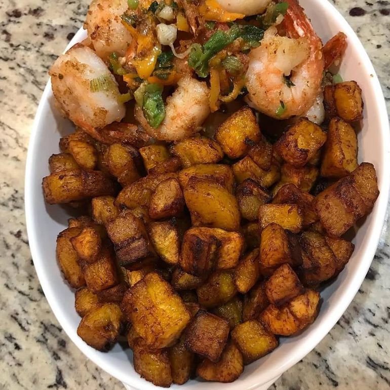 Le célèbre alloco (banane plantain frit) est parfait pour débuter le repas. Accompagné de crevettes sautées légèrement épicées, ce plat met tout de suite les papilles en fête.