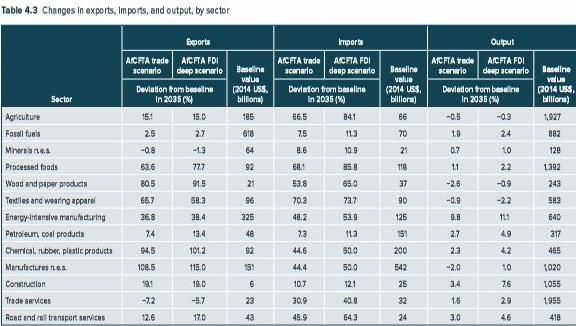 Selon les auteurs du rapport, "une intégration plus poussée dans ces domaines, permettrait de créer des marchés équitables et efficaces, d'améliorer la compétitivité et d'attirer encore plus d'investissements directs étrangers directs en réduisant les risques liés à l'évolution des réglementations et des politiques".