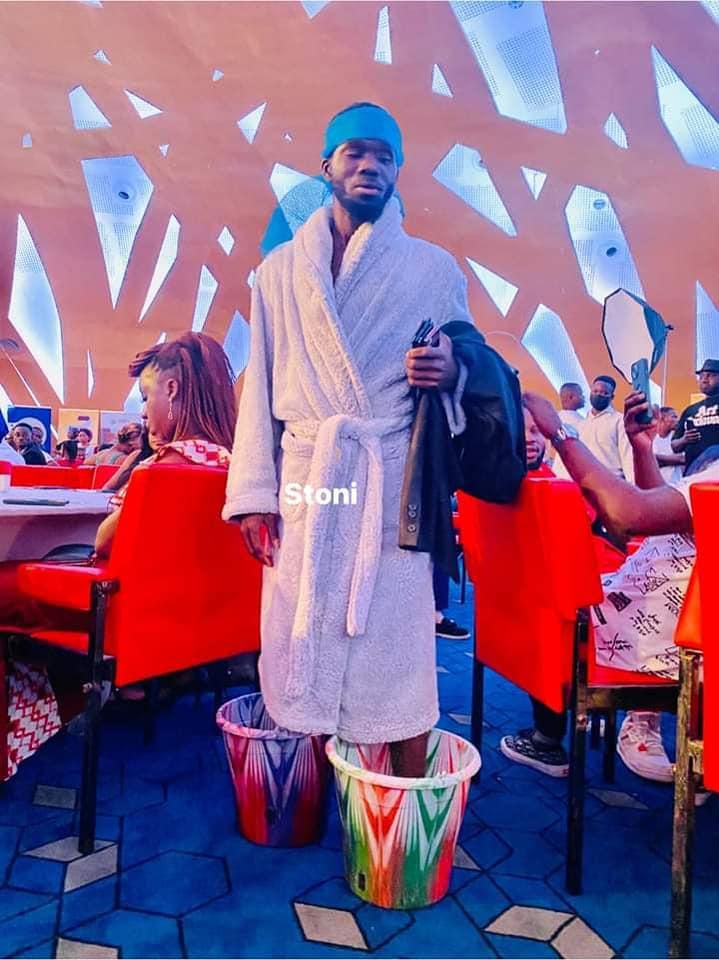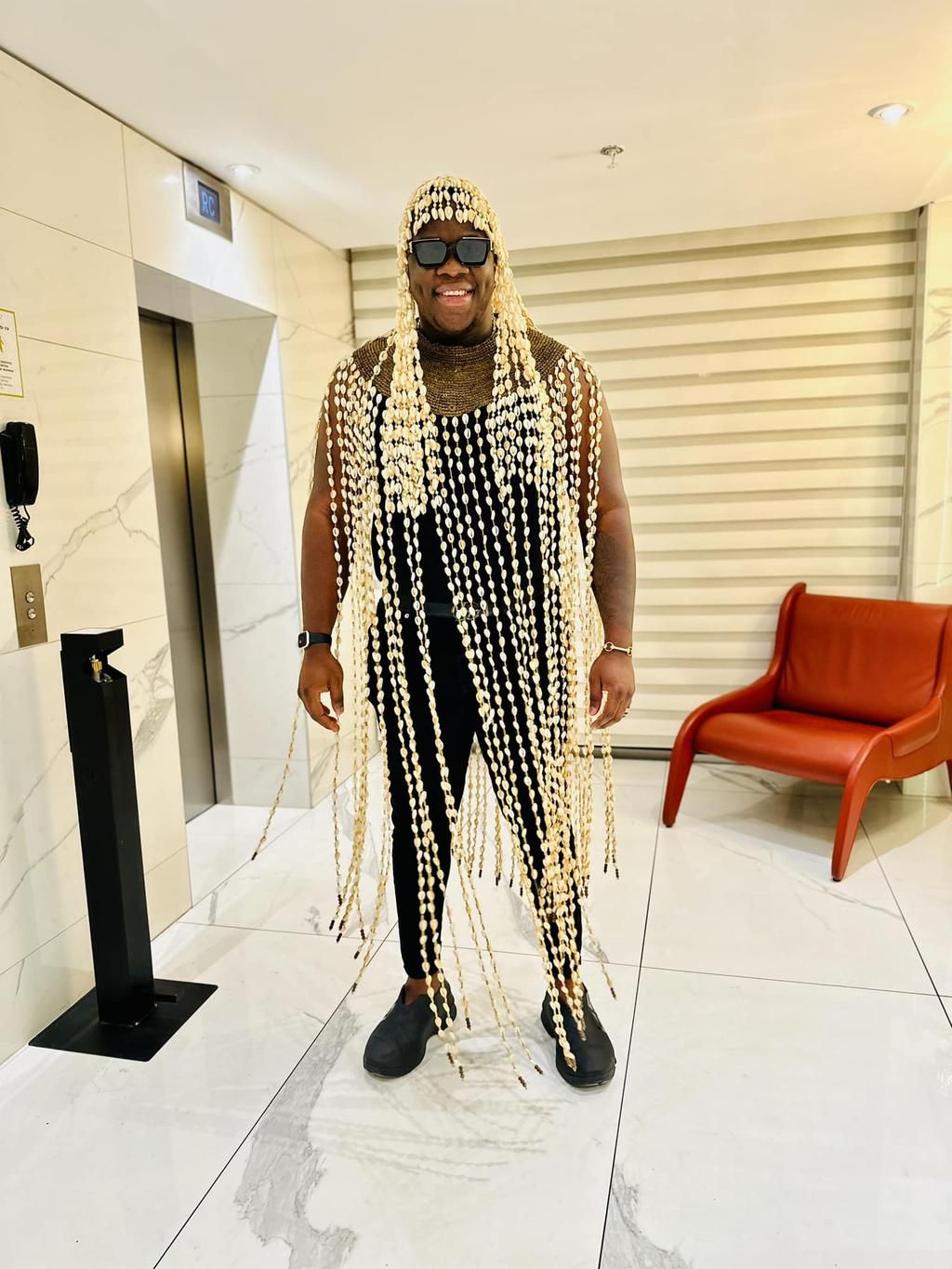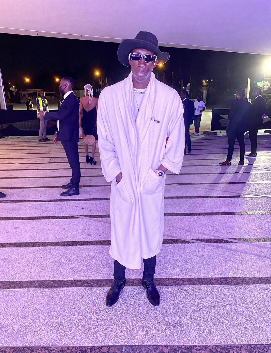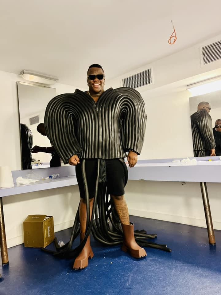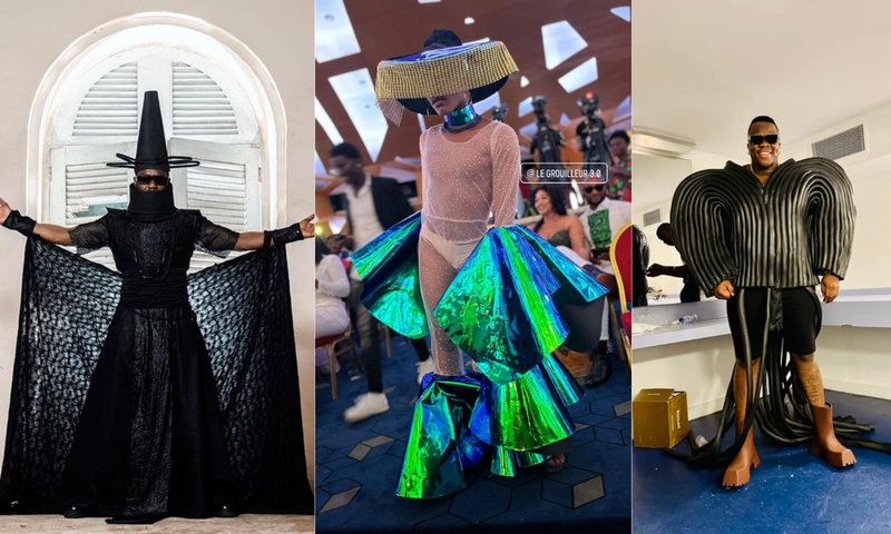 Pour le PRIMUD 2022, le chanteur a opté pour deux tenues de DS Fashion Couture. L'une est faite de cauris et la seconde est un ensemble culotte au haut bouffant.