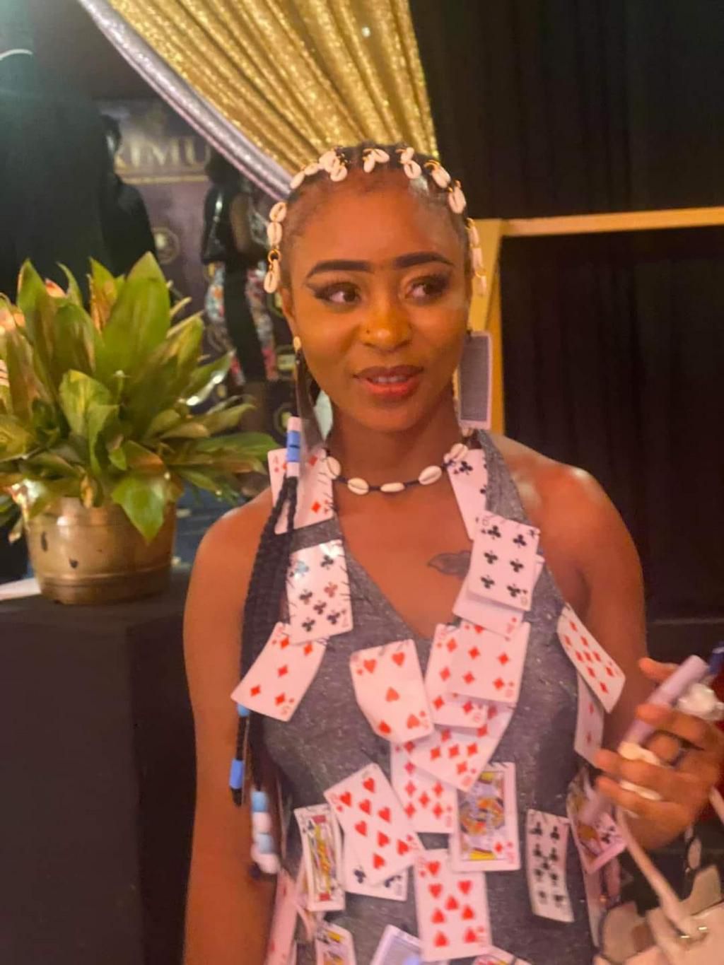 L'une des invités du PRIMUD n'est pas passée inaperçue grâce à sa robe décorée d'un jeu de cartes.