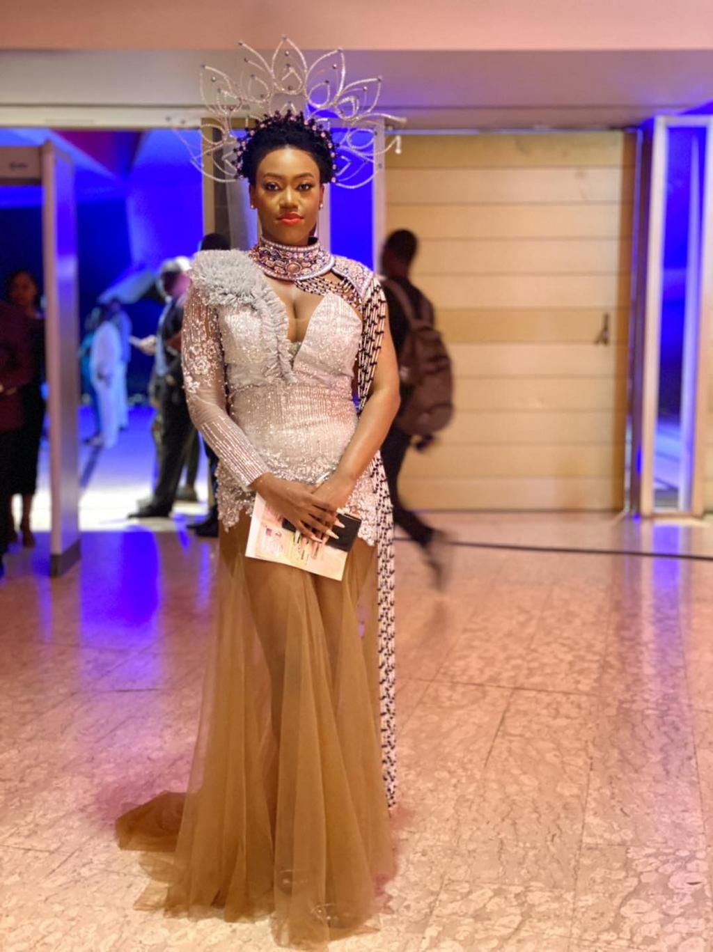 Et pour terminer la sélection, un look beaucoup plus sobre que les autres de la liste, histoire de souffler un peu. La chanteuse Hilary a porté une robe Nadal création et un bijou de tête Bam's Creation pour cette édition du Primud.