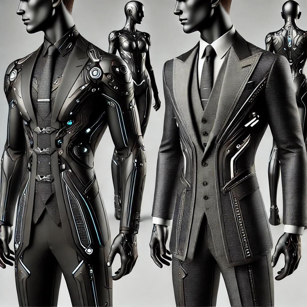 Pour les hommes ou les femmes qui préfèrent un look plus formel, optez pour un tailleur ajusté avec des détails métalliques ou holographiques subtils. Choisissez des matériaux intelligents qui s’adaptent à la température corporelle et aux conditions extérieures, combinant le confort et le style avec une touche d’innovation.
