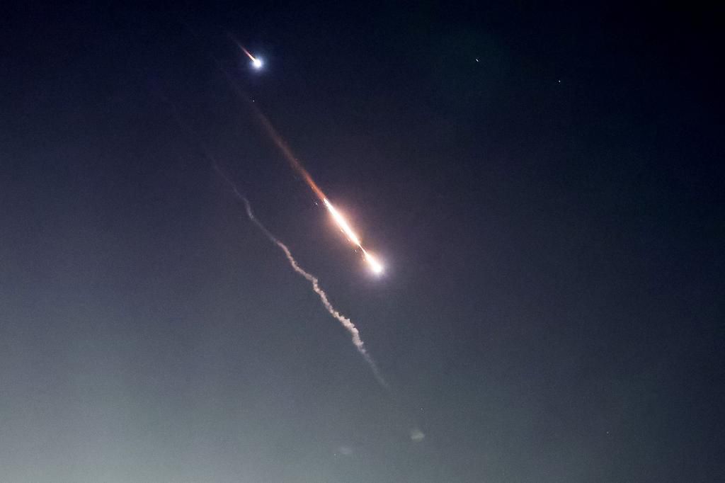 Des objets sont visibles dans le ciel au-dessus de Jérusalem après que l'Iran a lancé des drones et des missiles en direction d'Israël, à Jérusalem le 14 avril 2024/Ronen Zvulun via Reuters
