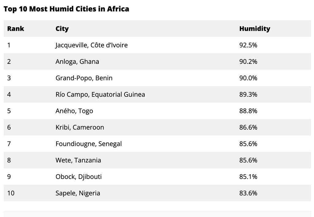 Top 10 des villes les plus humides d'Afrique / Un classement de Fresh House